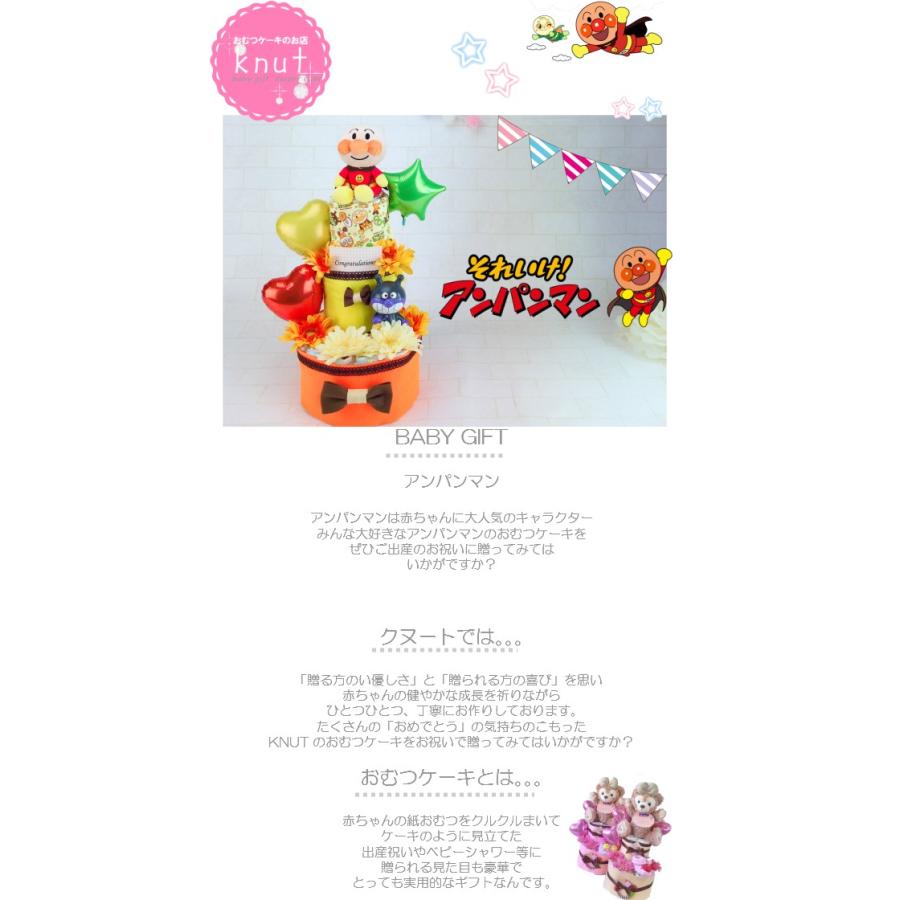 アンパンマン 2段 おむつケーキ 出産祝い 名前入り おむつケーキ オムツケーキ 出産祝 名入れ刺繍