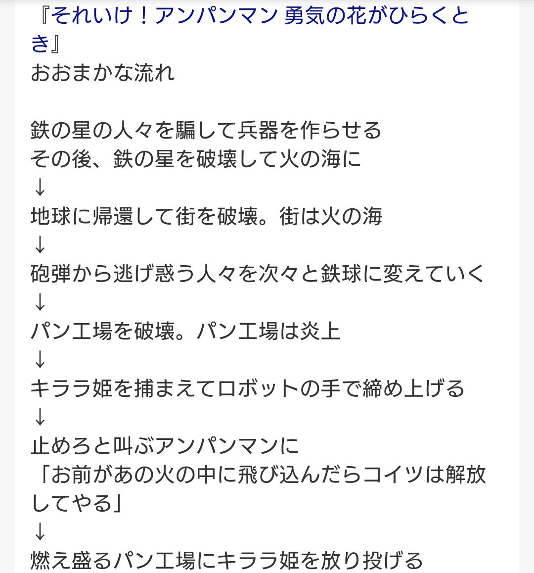 やまだなおと on twitter 劇場版アンパンマン 勇気の花がひらくとき 1999 を鑑賞 キララ姫とアンパンマンの 好き という気持ちのすれ違いが切ない いつも 勇気100倍 のアンパンマンが 勇気3倍 になったり パン工事が爆破されたり 鉄球になったみんなや