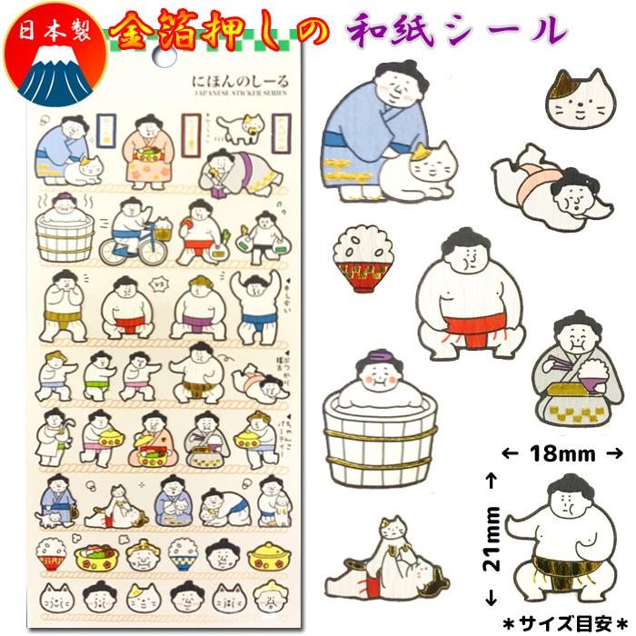 金箔押し 和紙シール カミオジャパン 金箔押しの和紙シール ちゃんこ鍋とねこちゃんが好きなお相撲さん スモウ すもう stk4640000hu スクールtown 通販 yahoo ショッピング