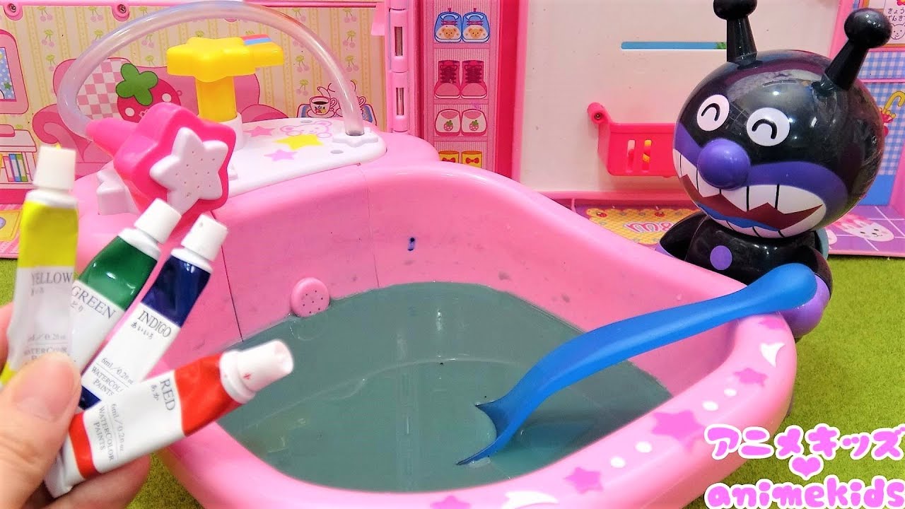 アンパンマン アニメ おもちゃ アンパンマンとバイキンマン お風呂のいろをかえちゃおう えのぐ いろあそび animekids アニメキッズ anpanman toy