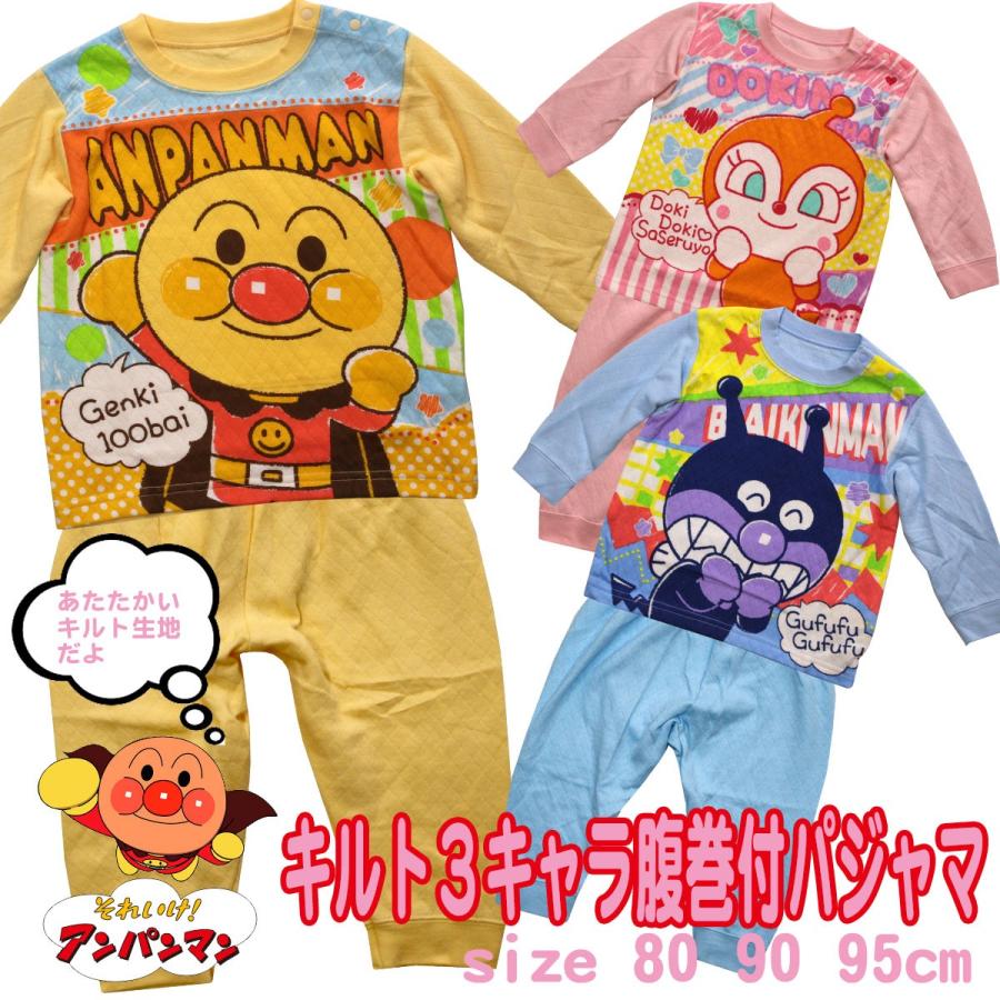 それいけ アンパンマン パジャマ 腹巻 長袖 4キャラ ニットキルト素材 パジャマ 女の子 男の子 j kuz45
