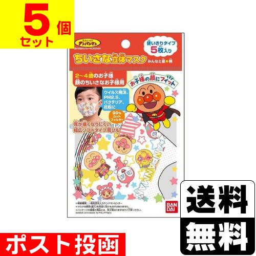 送料250円 バンダイ ちいさな立体マスク アンパンマン おかおとおんぷ柄 5枚入 ドラッグストアザグザグ通販