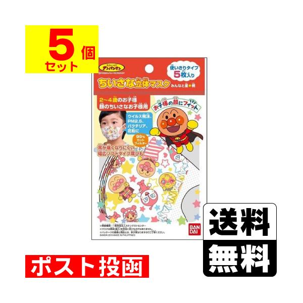 送料250円 バンダイ ちいさな立体マスク アンパンマン おかおとおんぷ柄 5枚入 ドラッグストアザグザグ通販