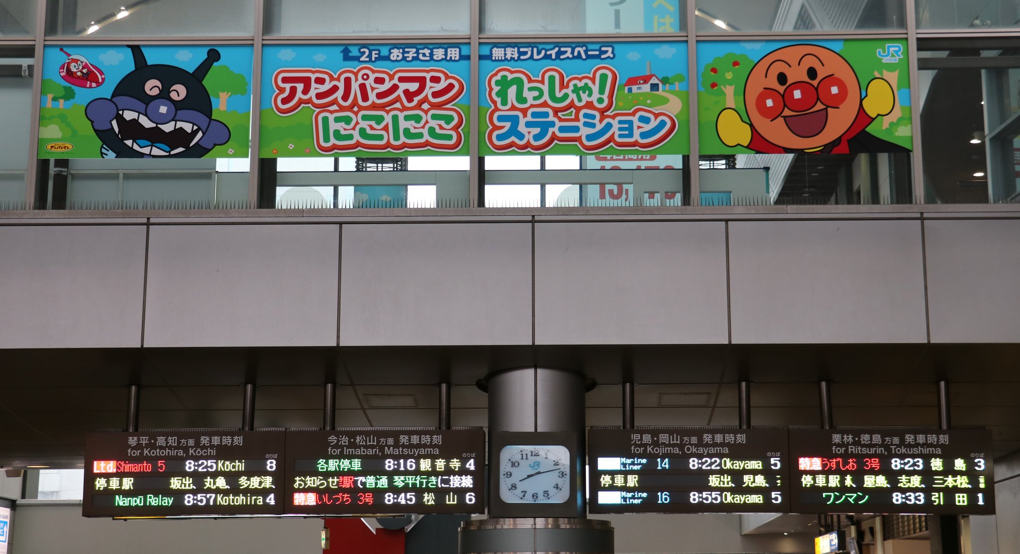 uzivatel 新条 na twitteru 9 19 讃 高松駅 1f 四国デスティネーションキャンペーン2017 カウントダウンパネル 構内吹き抜け 左右反転 2f アンパンマンれっしゃ にこにこステーション