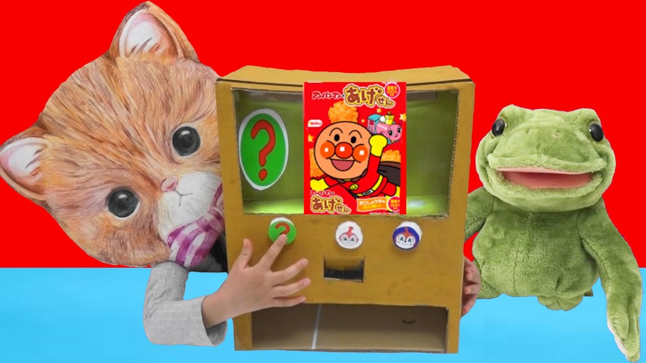 赤ちゃんとグミを食べたい アンパンマングミじはんき ダンボール自販機で遊ぼう cardboard vending machine