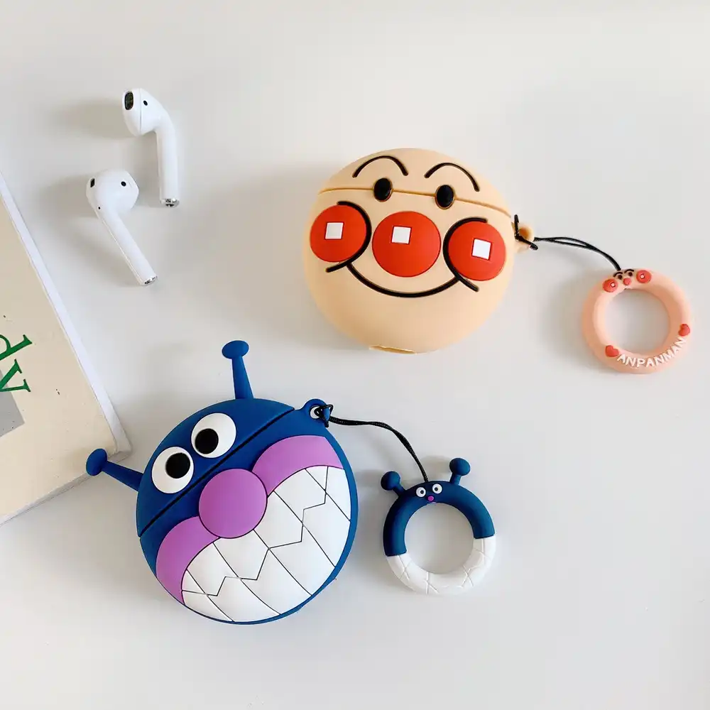 3dかわいい漫画アンパンマンbaikinmanヘッドホンケースアップルのbluetoothイヤホンairpods 1 2シリコーン保護スリーブカバー