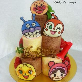 アンパンマン簡単ロールケーキタワー誕生日