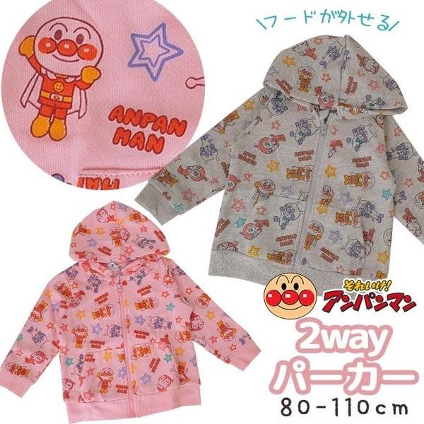 amazon アンパンマン パーカー 2way 前開き フード 取り外し 90 95 100 グレー サイズ90 トレーナー パーカー 通販