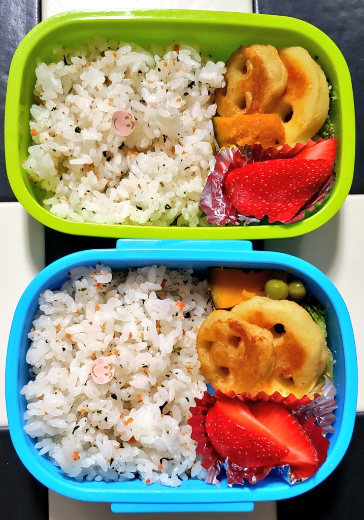 1歳児のお弁当メニュー アンパンマンおにぎりとかぼちゃのコロッケ しゅふろぐ