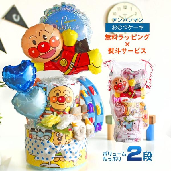 楽天市場 おむつケーキ アンパンマン 出産祝い ギフト 名入れ 男の子 女の子 アンパンマン 2段オムツケーキ ラッピング無料 メリーズ パンパース ムーニー ドキンちゃん バイキンマン あかちゃんまん コキンちゃん おむつケーキのbosco おむつケーキ 男の子