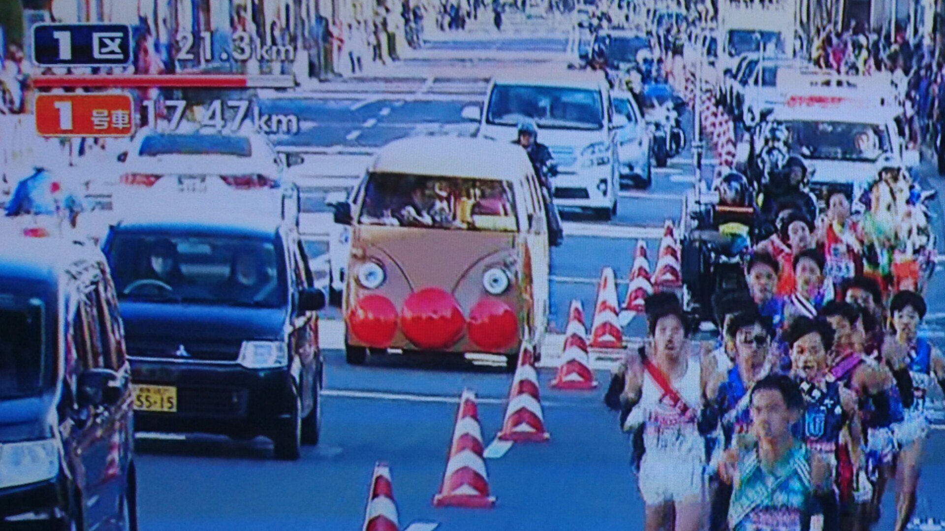 箱根駅伝にアンパンマン号がいたw怖い