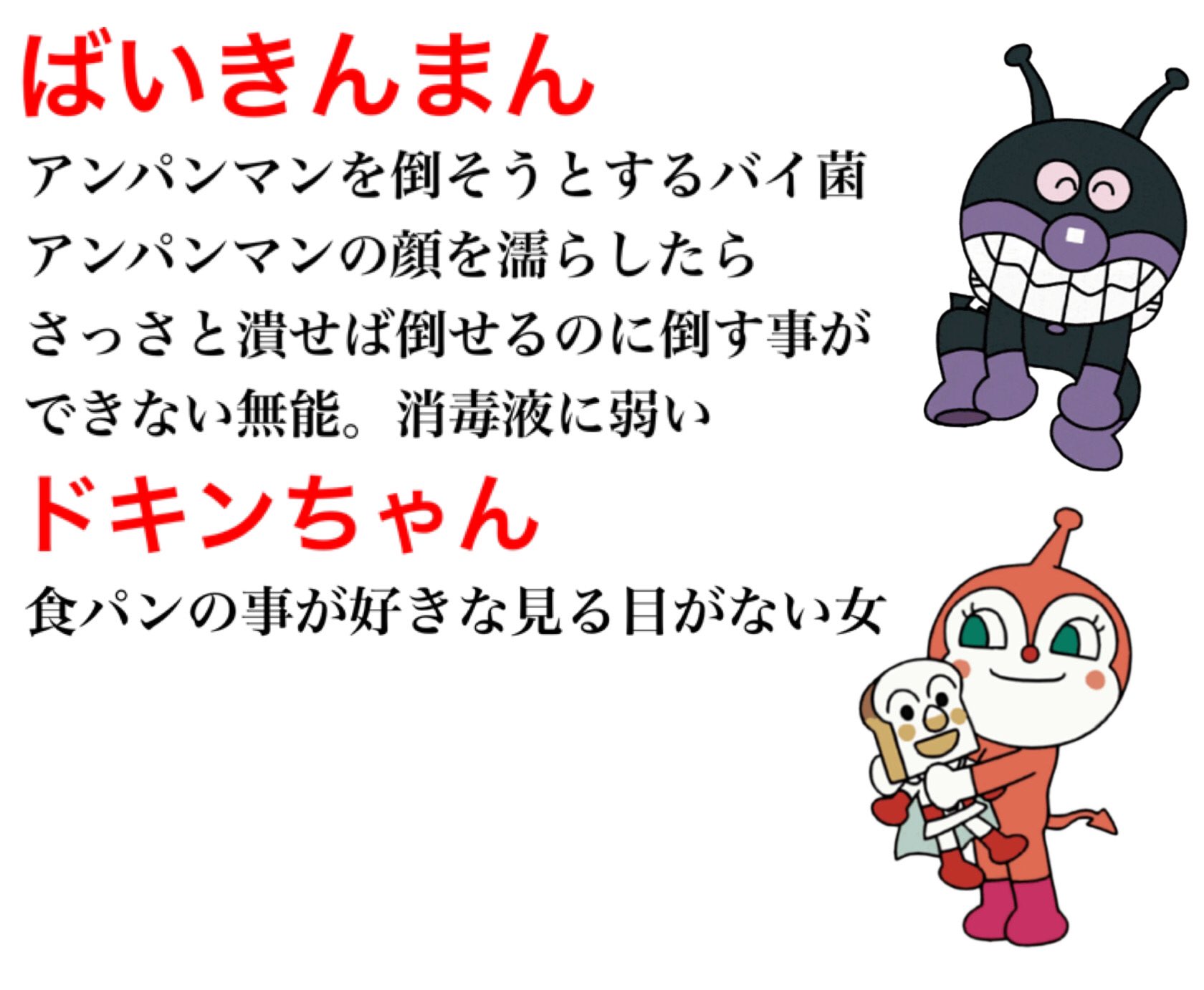 キムテス on twitter アンパンマンを見た事ない人達にアンパンマンのキャラクターを紹介します