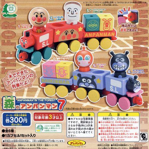 amazon 森のアンパンマン でんしゃでおでかけ 編 6種 トレイン 木製全6種 1 アンパンマン 先頭車 2 ばいきんまん カプセル玩具 おもちゃ