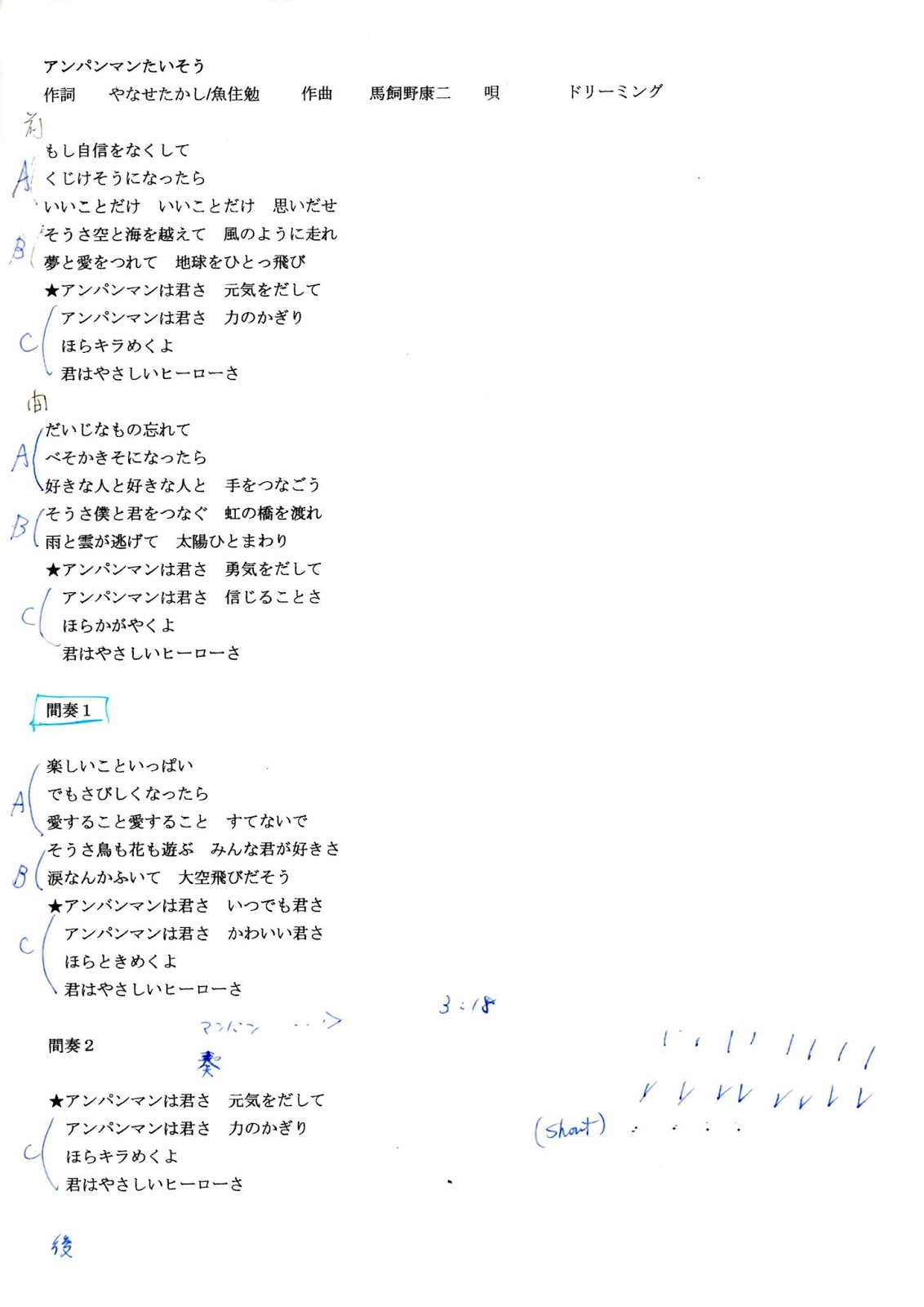 アンパンマンたいそう 歌詞 ドリーミング ふりがな付 歌詞検索サイト utaten