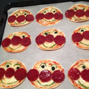 餃子の皮でアンパンマンピザ