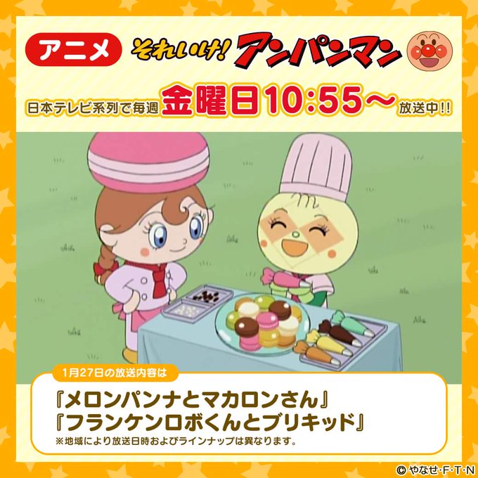 ネコ美ちゃん登場記録bot on twitter 1342話a メロンパンナとマカロンさん cv 本美奈子 ご機嫌でアンパンマン のマーチを歌っていたらおなかがすいたので マカロンさんのマカロンをもらった