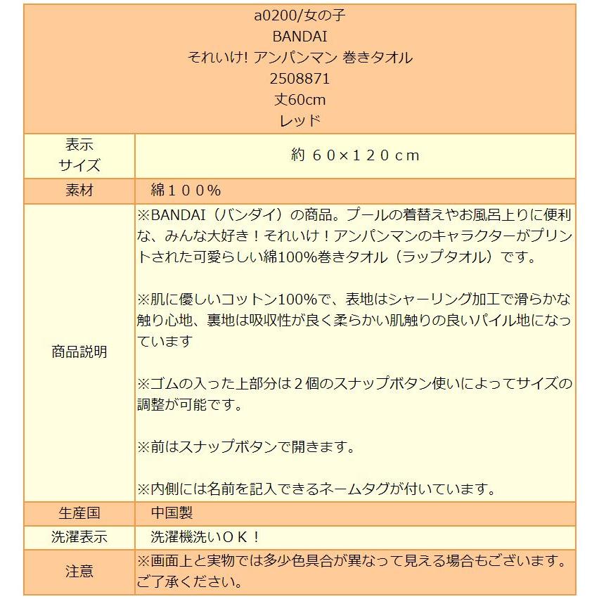 女の子 アンパンマン 巻きタオル ラップタオル 丈60cm レッド 2508871 bandai バンダイ anpanman 5