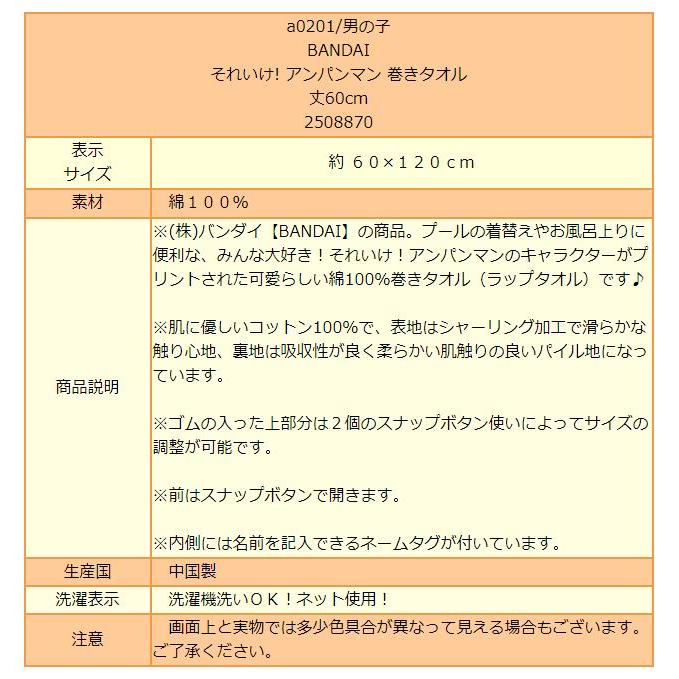 アンパンマン 巻きタオル ラップタオル 丈50cm 2508872 子供 男の子 キッズ ジュニア プール bandai バンダイ