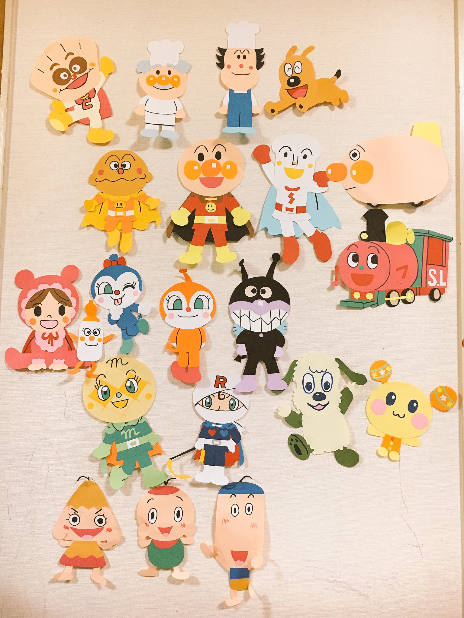 りん on twitter 仲間が増えたよ 画用紙で作って見た ワンワンうーたん アンパンマン しょくぱんまん カレーパンマン バイキンマン ドキンちゃん コキンちゃん ジャムおじさん バタコさん チーズ アンパンマン号 赤ちゃんマン ロールパンナ