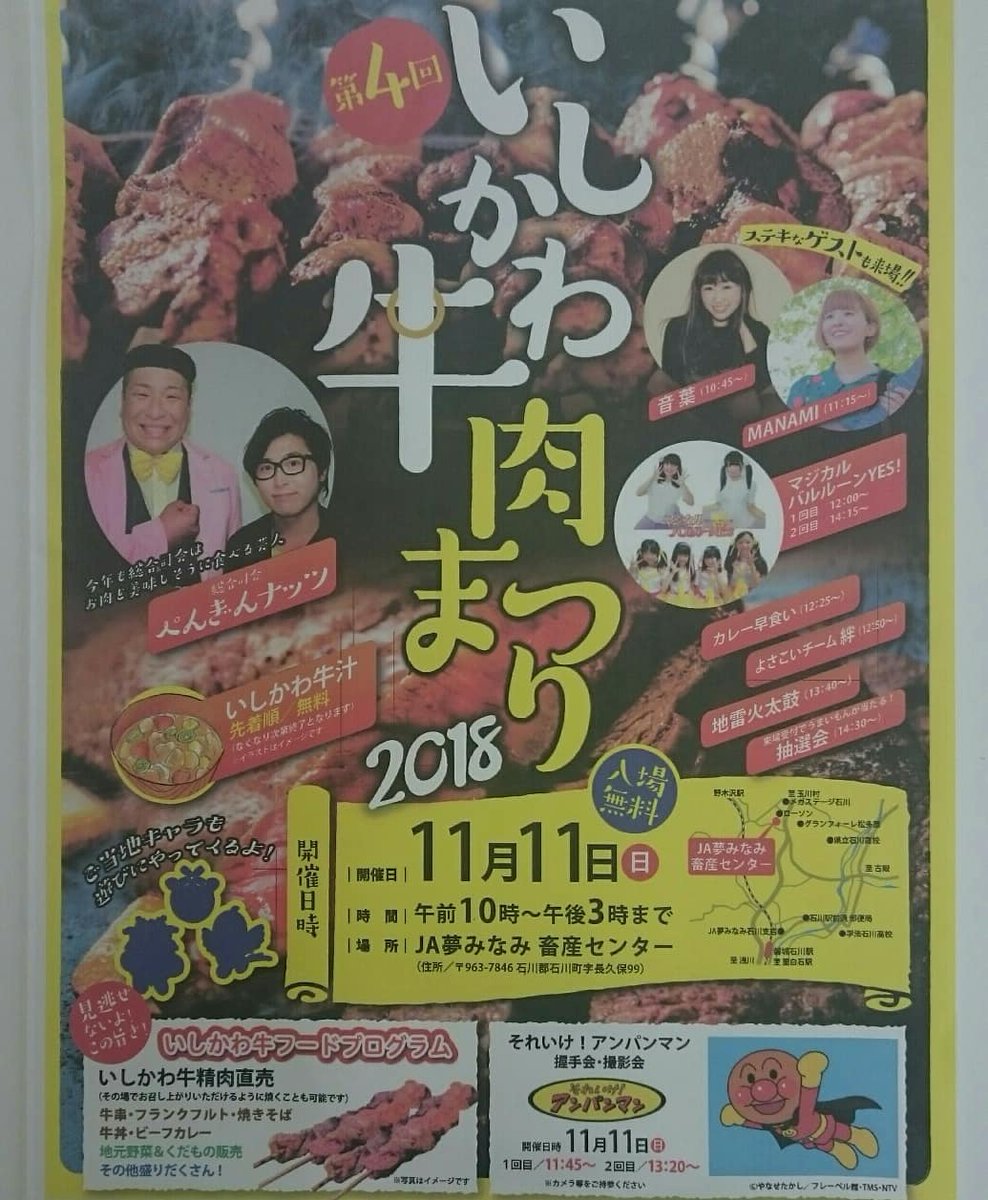 平田村 twitterren 11月11日 日 に ja夢みなみ畜産センターにて10時 いしかわ牛肉まつり2018 が開催されます 入場は無料で平田村からは ご当地キャラのジュッピーとよさこいチーム絆が参加します 是非お越し下さい ひらた 平田村 ジュッピー よさこい
